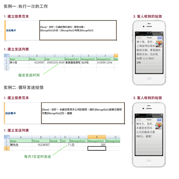 ExcelSMS is a service that allows client to upload large amount of numbers through Excel management and blast it out in the same time efficiently. Furthermore, ExcelSMS is able to enhance the quality of Customer Relationship Management (CRM) without any cost distributed to the system development or staffs training. User can simply upload the data into the SMS platform, for instance: contact list, Billing amount, birthdays, appointment day as well as location. The system can automatically send out the SMS regarding billing reminder, appointment reminder as well as birthday greetings according to clients requirement.